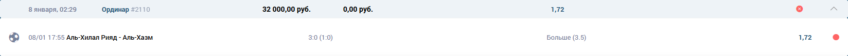 Футбол Чемпионат Саудовской Аравии \ Аль-Хилал Рияд - Аль-Наср Рияд ТБ 3.5