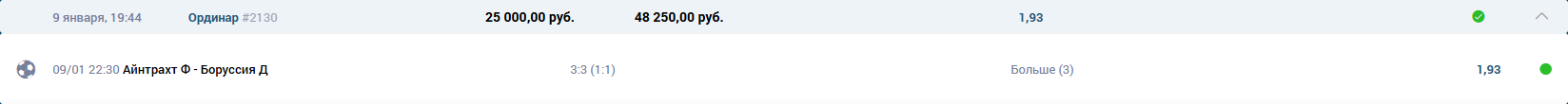 Футбол Чемпионат Германии \ Айнтрахт Ф - Боруссия Д ТБ 3