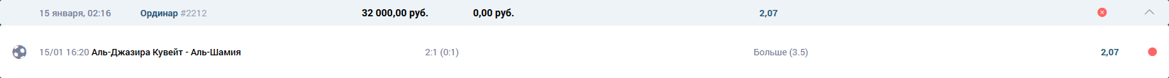 Футбол Чемпионат Кувейта \ Аль-Джазира Кувейт - Аль-Шамия ТБ 3.5